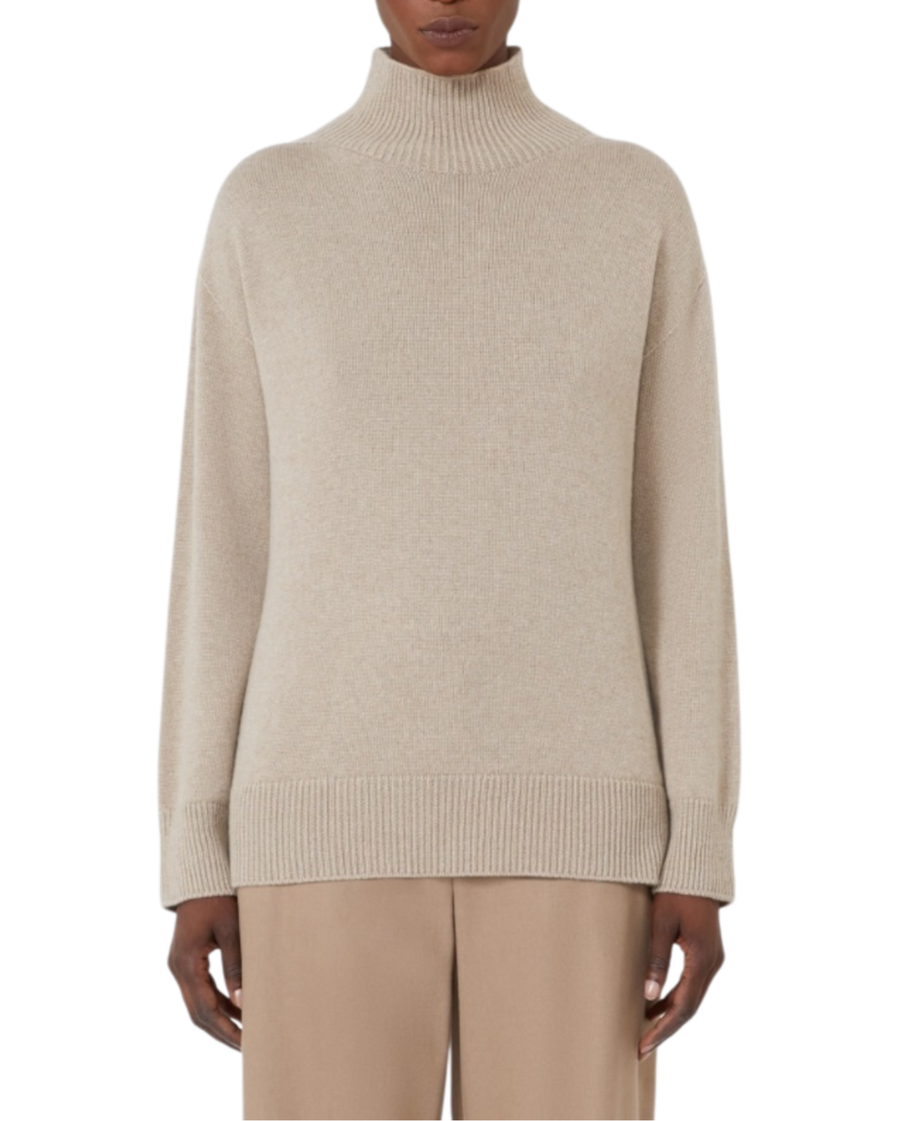Pull à col roulé en cachemire beige