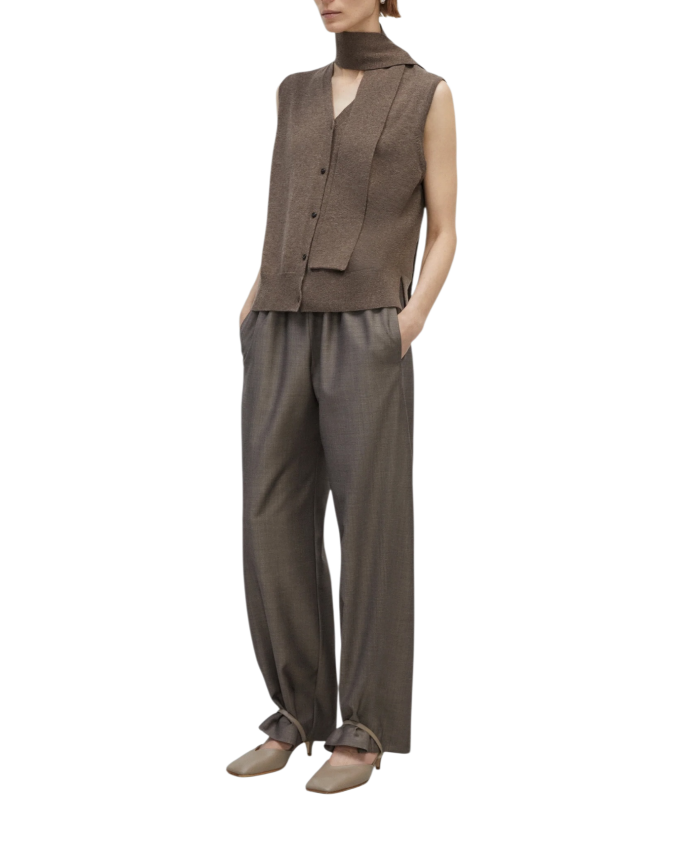 Gilet en dentelle de laine mérinos taupe